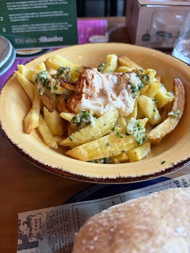 Read moreHan reabierto con un concepto de mercado en principio interesante. Pides cosas de diferentes puestos que hay dentro y te traen un dispositivo para que recojas la comida cuando este vibre. Ok. Pedimos gildas, oreja y ensaladilla. La gilda (4,50) no merece la pena: la aceituna bien podría ser de supermercado normalita. La oreja estaba rica. La ensaladilla tenía un aspecto extraño, con la mahonesa liquida a un lado del plato. El emplatado de la oreja tampoco invitaba mucho. En general, me ha parecido un sitio un poco...