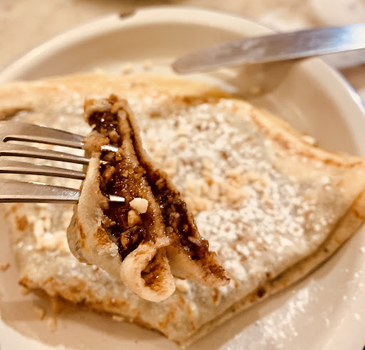Read moreWhenever I feel lonely, chocolate helps me feel better. (Can anyone relate?) I have a lot of beautiful memories involving crepes (e.g. October Fest parties ending with a delicious chocolate crepe before falling to bed happily) After strolling around the city of Madrid on Saturday, I treated myself to a Ferrero Crepe (6.90€) and a Rooibos Tea (2.50€) at this cute creperia just off Calle Fuerncarral in Madrid that I’ve walked past so many times. I got a beautiful table just before the rain started pouring down. I enjoyed this sweet good night treat while watching people walk by on the street and now Im sitting on my Couch feeling satisfied. Vegan or gluten free options would be a reason for me to come back....