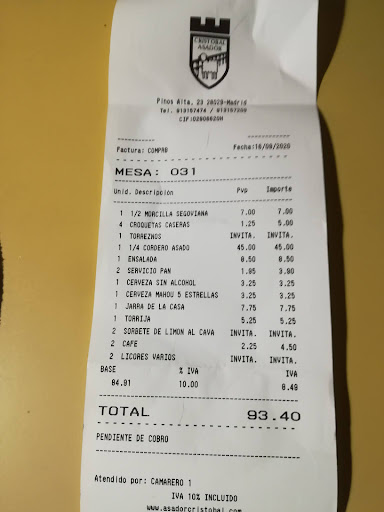 Hola amigos. Voy a editar esta reseña después de la visita de hoy al restaurante. UN GRAN ASADOR DE CORDERO EN MADRID La excelencia se alcanza por la acumulación de varios factores. Por un lado el ambiente, es confortable, cómodo, mesas bien separadas y espaciosas para poder mantener conversaciones privadas. Decoración austera y sobria. Muchas personas buscamos una experiencia de comida que nos recuerde a los tiempos pasados y a un estilo de vida más simple, y, este es uno de esos restaurantes rústicos que proporcionan esa sensación de nostalgia y comodidad. El asado de cordero, especialidad de la casa, simplemente "cumbre", en la cima de calidad, textura y sabor. Todas las entradas, torreznos, morcilla, chistorra, croquetas, excelentes entrantes para abrir boca. El vino de la casa servido en jarra tradicional, buena selección. Felicidades para propietaria y profesionales que defienden esta propuesta muy buena...