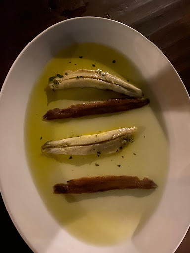 Primera vez que venimos, ya que es nuevo en el barrio. Hemos esperando 15’ a sentarnos, porque han tardado en preparar la mesa. Los 3 camareros de la terraza hacen corrillo para organizarse. No se les ve muy experimentados en su labor. La primera ración que nos traen es el matrimonio: 4 lomos (ver foto). Creíamos que era una broma y lo devolvemos. Por 6 eur (sin IVA) no nos parece adecuado. Siguientes raciones: carrilleras y patatas revolconas (ver fotos). Tamaño absurdo para el precio que se paga. Buenas, pero sin nada destacable. Última ración: pulpo. En realidad es un carpaccio de pulpo que viene con mucha patata tapada por el pulpo, por lo que parece más de lo que es.. Viene un camarero con la ración de matrimonio de nuevo (ya se la habían llevado hacía un rato) y le decimos que no la queremos, por las razones que explicaba antes. Se ofende porque parece ser que las anchoas son de Cantabria (no esperaba menos...) y de una marca muy buena. Que el margen era muy pequeño. Insistimos que solemos pedir estas raciones en otros sitios, buenos, y no son así. Se las lleva. Al rato aparece el cocinero, que puede ser el dueño. Nos cuenta el trabajo que le cuesta hacer los boquerones, que las anchoas son la creme de la creme, algo de una estrella michelín y que llevan poco abiertos. Le comentamos que además las raciones son muuuy escasas. Es que la carrillera la hace en 21 horas, una receta muy selecta... Nos pide disculpas y comenta que siguen mejorando la carta y el servicio. Nos anima a comer otro día pero dentro de local, que no es lo mismo que la terraza...
