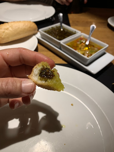 We travel internationally throughout the year and are sitting here trying to recall another meal that matched our meal and were having trouble. We were treated like royalty from the moment we sat down: a complementary glass of rosé Cava, and then pumpkin soup, olives, bread (including gluten free - see photo) with deliciously infused oils for dipping, then our perfectly grilled peppers and artichokes, steak with Rocquefort. We ordered creme caramel and more complementary treats arrived: Greek yogurt with mango and lemon sorbet. Our server suggested a wonderful wine (with Braille enhanced label) and we could not have been happier when the whole thing came...