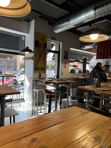 Derzu Bar es un Restaurante Chino con un interior algo informal, enfocado en comer en mesas altas mientras tomas algo. Cuenta con cocina a la vista donde ves como los cocineros se ponen manos a la obra y sacan sus creaciones adelante.