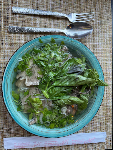 Nos aventuramos a probar por primera vez la comida vietnamita y decir que fue una auténtica experiencia. Probablemente de la mejor comida asiática que he probado nunca. En primer lugar le comentamos al encargado que era la primera vez que visitábamos un restaurante de este tipo y que fuese el quien nos aconsejará. Este fue un auténtico profesional tanto en las recomendaciones como en las explicaciones de cada plato: Inicial mente probamos los Bao Sun Cha, con un Pan de bao delicioso y secreto ibérico a la parrilla que te hacían la boca agua. Tras ellos no nos pudimos resistir y probamos los Bao Ba Chi otros pan Bao rellenos de panceta crujiente qué igual o mejor que lo anteriores, estaban riquísimos. Para rematar los Pao Bau probamos el Muc delicioso con ese toque de pan negro. Para cambiar el encargado nos trajo las Ha Cao una empanadillas al vapor deliciosas con mucho sabor y muy rico en el paladar. Acompañamos estas con la ensalada de Mango, algo que realmente me sorprendió, fresca y sabrosa con un toque a hierva buena que la hacía única. Imprescindible probarla. Tras ello pasamos a las pastas. Probamos inicialmente el Pho Xao unos tallarines de vietnam en plato caliente carne de cerdo y verduras. Súper livianos y sabrosos y de nuevo todo con un toque fresco que no acaba siendo nada empalagoso, la comida nada grasienta súper sana y con multitud de toques aromáticos que no esperas encontrar y que su combinación es increíble. Pasando al arroz el encargado nos sugirió el Chien Haití San Aco.pañado de huevo y hierva buena manteniendo esos toques frescos. De nuevo buenísimo. Por último probamos los platos estrella de la casa. En primer lugar el mejor salmón que he podido probar nunca. Com ca hoy salmón cocinado en salsa De mango, solo decir que daban ganas de beberse directamente la salsa. Alucinantes aspecto y sabor. Por último la carne tierna se desacka en la boca, no hacia falta ni cortarla con cuchillo. Repetiremos sin duda, muchas gracias al encargado y el equipo por su atención fueron súper amables desde el primer momento. El restaurante además está en una zona buenisima la cual es fácil de aparcar hay sombra y se come muy agusto y tranquilo....
