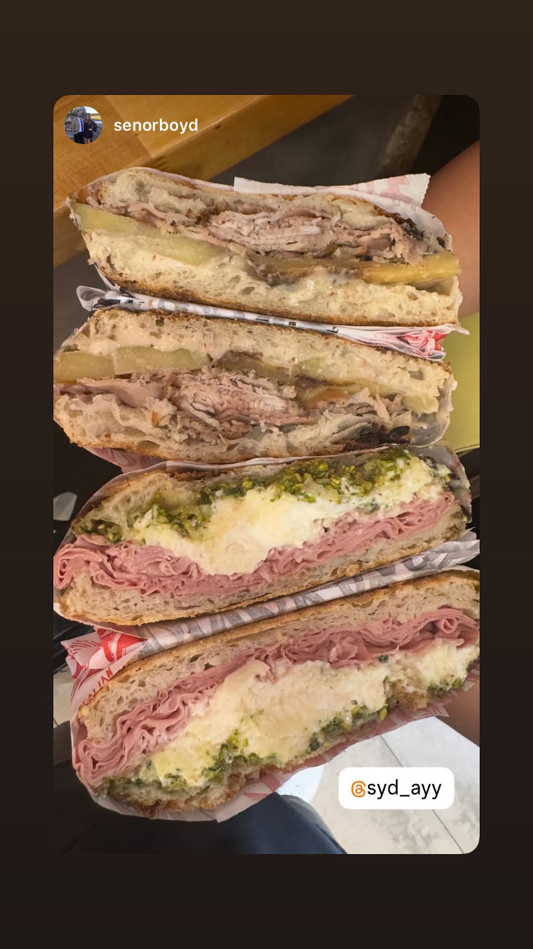 Read moreCome con Casa with honey—where do I even start? This might genuinely be the best sandwich I’ve ever eaten in my life. The combination of flavors was nothing short of perfection: light, fresh, sweet, and savory all at once. The honey added the perfect touch of sweetness without overpowering the other ingredients, creating an unforgettable balance. The bread was thin yet sturdy, with a perfectly crispy exterior that gave each bite a satisfying crunch. We also tried the porchetta and potato sandwich, which had a rich, savory flavor that practically melted in your mouth—delicious in its own right. But the Come con Casa with honey absolutely stole the show. It’s the kind of sandwich you dream about. No joke—we’re probably going...