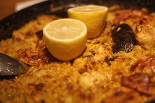 Lo negativo: sobre todo, "comer bajo presión", esto es, la política leonina de tiempos que te obliga a abandonar la mesa en exactamente 90'. Es cierto que te lo avisan al principio, pero uno espera que esta norma se flexibilice y se aplique "con cabeza" (solo para evitar excesos, que también lo comprendo). En nuestro caso, cuando nos avisaron de que quedaban 15' yo todavía estaba comiendo (raciones/paella) y de hecho, tuve que hacer un esfuerzo para terminar "a tiempo" (y para el que piense que es mucho tiempo, bueno, pues depende de muchos factores: p.ej de si pides poco o por el contrario "de más" y te cuesta más terminar, de si eres lento o rápido comiendo, de si vas pidiendo progresivamente y no lo pides todo de una vez, de si llevas niños -que también van a su ritmo-, de lo que tengas que esperar a ser servido, etc). Nos quejamos (amable y constructivamente) al camarero (que nos atendió bien en todo momento) y nos dijo que era política de empresa. Habríamos pedido un postre y/o un café pero estando ya "fuera de tiempo" y en cualquier caso, con el cronómetro en mano y agobiando para que nos marchásemos... pues lo siento pero así no (no es una experiencia agradable). Insisto en que deberían tener un poco más de vista. trato "borreguil" en la cola de antes de sentarte. P.ej nos dijeron que pasáramos a arriba y cuando estábamos esperando arriba, un camarero nos "regañó" porque molestábamos (si no estaba la mesa lista, ¿para qué nos pasan a arriba?). Comprendo que los camareros van con prisas pero un poco de tacto, señores, que yo no tengo la culpa de que nos pasaran a arriba sin estar la mesa lista. Luego hay otros puntos discutibles como no dejar sentarte si falta una persona (que por un lado lo comprendo pero vuelvo a lo de antes: un poco de "vista" ayudaría... ya que no es lo mismo que vaya un "listo" con toda la cara a "reservar la mesa" para el resto que viene media hora más tarde... a una situación "normal" en la que estén todos y por faltar uno -que encima sabes que en 10 min llega porque le has llamado por tlf y preguntado- no te dejen sentarte).