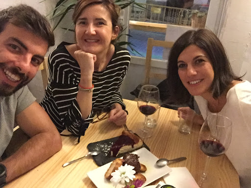La carta es pequeñita, nada de esas con interminables platos con nombres larguísimos que tardas más en leerlos que en comerlos. Ideal para compartir platos y así probarla toda. Las croquetas buenísimas. El detalle de ponernos dos para cada una, (la ración es de seis) se agradeció, así como unos boquerones, que estaban espectaculares, y que no había para una ración entera, supongo, pero nos puso los que les quedaban para no quedarnos con las ganas de probarlos. Las albóndigas, no tengo palabras para describir lo ricas que estaban, no puedes dejar de rebañar el plato con un pan tierno y jugoso. Lo más sorprendente para mi fue la cebolla, de cerezas creo recordar que era, que acompañaba al magret de pato. De postre una maceta de helado de vainilla con trocitos de oreo y topins para acompañar y que si se te acaban, no hay problema para que te pongan más ¡una delicia! La tarta de mascarpone riquísima. Un 10 para el cocinero La carta de vinos también es cortita, pero tienes un poquito de todo para elegir con la cena. Es como comer en casa de la abuela, pero sin abuela. Un sitio que sin duda recomiendo para cenar muy a gusto. Reitero las gracias a Jesús por atendernos tan bien, ser tan agradable y por cambiarnos, sin problemas, la reserva que hicimos de 6, para 5. Mis amigas venían de Bilbao y quería llevarlas a un buen sitio para cenar después del teatro, y la verdad es que nos...