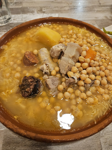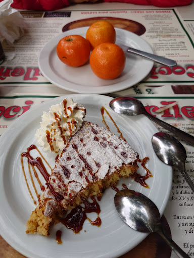 Read moreViendo el menú del día atractivo y a pesar de ser un poco más caro que otro restaurante próximo donde solemos comer cuando pasamos por Atocha, nos decidimos a entrar. Impresión del local, ambiente de bar de barriada, que se fue "animando" gracias a un par de borrachuzos instalados en las tragaperras que a voz en grito hablaban con otros individuos de una mesa próxima. La cosa subió de tono cuando uno de ellos acabó su periplo propinando un fuerte golpe a una de las máquinas, cosa que hizo saltar la electricidad de una parte del local y que no acabó en pelea porque el tamaño del personaje imponía. En cuanto al servicio, empezaron por traernos unas olivillas para ir picando, no sé si serían muy buenas ya que los de la otra mesa a los que se las habían llevado antes sólo habían consumido dos, cuyas pitas seguían en el platillo cuando ese mismo platillo vino directamente a nosotros (supongo que son reminiscencias de lo que fueron las medidas covid). De primero pedimos "tempura" (osea trozos de verdura aceitosos rebozados), algo casi vomitivo. De segundo cordero asado, que asombrosamente estaba bueno, aunque eso sí se trataba de las partes menos nobles del animal. Postre tarta de santiago, no sé de donde habían sacado esa versión tan empalagosamente dulce y que además habían adornado con dulce de caramelo. Para escarmentar ya nos sirvió,...