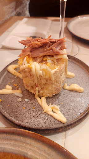 Read moreEl Sur en Madrid. Ya habíamos estado tomando algo y nos decidimos a volver para probar la carta. Simplemente espectacular. Con las bebidas nos trajeron aceitunas rebozadas, algo que ninguno de los 5 habíamos probado nunca y que nos dejó muy sorprendidos. Pedimos fuera de carta: croquetas de rabo de taro (se derretían en la boca, no hay palabras que se ajusten a lo buenas que estaban) y hamburguesas de atún con una mayonesa, muy ricas y orginales. De la carta nos decantamos por el Tomate aliñado con melva canutera, Atún macerado con ali olí de lombarda (no se como estaría el ali olí porque el sabor del atún era tan increíblemente bueno que me pareció un pecado "estropearlo" con algo más) y por recomendación de Manuel, la ventresca (la grasa hecha pescado, qué delicia). Terminamos con una tarta de chocolate (sí, yo tampoco soy de chocolate, pero esta tienes que probarla sí o sí) y el postre de dulce de leche y mascarpone (me lo agradecerás después). Desde luego un sitio para volver una y otra vez. El servicio es una maravilla (gracias Manuél y Marco por vuestra dedicación y tratarnos tan bien), la decoración, la puesta en escena, TODO está cuidado con muchísimo mimo para que te sumerjas en un restaurante de Cádiz sin salir de la capital. Enhorabuena a Santi y a todo el equipo, ¡toda la...