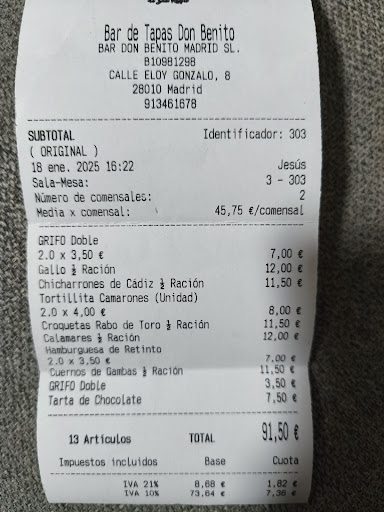 Acaba de abrir sus puertas en Madrid el “Don Benito” lo que deberíamos considerar la embajada de San Roque (un precioso pueblo de Cádiz) con una bella historia, pues es donde “reside la ciudad de Gibraltar”. El local acogedor, con una decoración con gusto que evoca al original restaurante Don Benito, situado en la Plaza de Armas de San Roque, con continuos guiños a la historia. La carta ofrece una amplia variedad de platos y tapas, con una sección especialmente dedicada al atún, desde los más clásicos, como la plancha o el tartar, hasta otros menos conocidos, como el atún en manteca, o el macerado con ali oli de lombarda. Tuve la oportunidad de probar varios platos de la carta y quedé gratamente sorprendido. El pescadito frito es excelente. El atún estaba fresco y de excelente calidad, muy bien cocinado y tenía un sabor intenso y delicioso. Tenían fuera de carta unas hortiguillas fritas, con tarentelo crudo por encima, que eran una verdadera locura. El servicio también fue excelente. El personal es muy amable y atento, y se esfuerza por ofrecer un servicio personalizado. Déjate aconsejar por Rodrigo, el dueño, que te guiará con maestría. En resumen. La carta es variada y ofrece platos para todos los gustos a un precio muy ajustado, y el servicio es excelente. Sin duda, es un lugar que recomiendo a todos los amantes del atún y...
