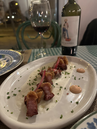 El local es pequeño, pero muy bonito y con un gran ambiente, y la atención por parte del camarero (se me olvidó preguntarle el nombre) fue la mejor que he recibido en mucho tiempo: simpático, divertido, atento y perfecto a la hora de aconsejarnos los platos y de sorprendernos con el vino.