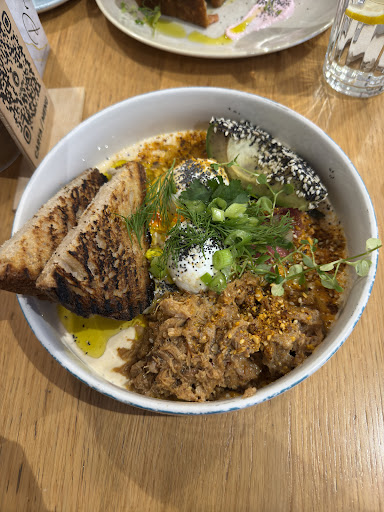 Read moreThe place is not so big, but feels cozy. The staff was friendly and helpful, just it was too busy, so you need to remind them for few times. We ordered 3 salty dishes and 1 sweet dishe. All the salty were quite delicious with great amount for the price. The sweet Canadian pancake was great amount, but the flavor was average and a bit dry. The one thing is that they don't take reservations in the weekend for the brunch, so you have to wait there, we were 4 persons, so we were waiting for 55 minutes which it is a bit longer than what we expected. If you are 1 or 2 persons they usually will let you go first, cause there has more tables for 2 persons. If you are more than 4 persons I will recommend to seat in separate tables or tell them you guys don't mind to seat 6 persons on 4 persons tables, so you can save more waiting time. Cause I saw one group of 7 persons after they waited for 1 hour, in the end they gave them a table for 4 persons with more chairs. Which maybe the restaurant should tell them from the beginning if they would like to seat like this, cause I saw at least 3 groups after them went in before them, cause they have only 3 or 4 persons. Also it was many people outside waiting, so the staff was coming to ask us if they can take away our plates many times which it is a bit bothering even we understand that they need to have tables for people...