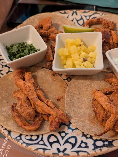 Food - "meh" would be the best way to describe it. The meet quesadilla were decent, baja tacos flavorless, guacamole was the tiniest ever, pastor tacos were hedious, margaritas were good.