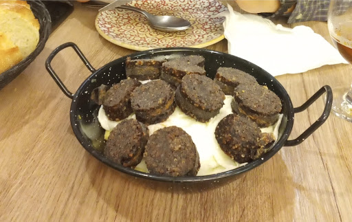 Sartén de huevos rotos con patatas y chistorra (13€): la verdad es que estaban bastante salados, pero también hay que decir que las patatas estaban cortadas a mano (nada de patatas de bolsa) y los huevos en su punto justo. Eso sí, con una sola sartén comen dos personas sin necesidad de ningún entrante, por lo que no hay manera humana de que una sola persona...