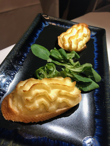 Our starter (complimentary) two pieces of sliced baguettes with squiggle piped mashed potato? Tasted like baby food that was broiled quickly by a salamander... one bite of that