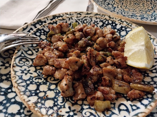 Read moreUn sitio en el que disfrutamos una agradable velada. Terraza cubierta, noche de jueves en enero. Estuvimos solos, dentro sí había más mesas pero cenar a solas, con tranquilidad, fue genial. Eso sí, tengo que decir que el servicio fue algo lento, hubiera agradecido algo menos espacio entre un plato y otro. El personal fue amable y correcto. Con los platos fuimos "in descendo"... empezamos muy arriba con unos mejillones gallegos estupendos, jugosos, carnosos, buen tamaño y en su punto de cocción. Luego unas vieiras gratinadas, muy ricas, aunque sigo pensando, ésto ya me ocurrió en El carbón de Valentina (restaurante casi enfrente de los mismos dueños, parece, porque, nombres aparte, las vajillas son iguales y las cartas muy muy parecidas), el pegote de alioli encima, no creo que le aporte nada. Seguimos con unos chanquetes con huevos, crujientes y sabrosos, con éstos no fallas... y aquí empezó lo que nos gustó menos... lamentablemente, esta vez, el carabineros con huevo frito, no nos agradó... la última vez que lo tomamos enfrente, nos lo prepararon, todo partido y mezclado, con su buen chorro de jugo de la cabeza del carabinero... esta vez no nos lo prepararon pero nosotros mal pudimos hacerlo... porque, aparte de ser muy muy pequeño, estaba sobre cocido, y por tanto, duro e insípido el cuerpo y seca la cabeza... tienen que cuidar estas cosas... no los devolvimos de milagro. Y lo último, las mollejas, bastante generoso para ser media ración, peeero, estaban duras... la mollejas de cordero es exquisita pero tiene que estar tierna por dentro y algo tostadita y melosa por fuera. Estaban duras, sin más... Asumiré que fue un tropezón, y lo dejo en 4 estrellas, en espera de la próxima vez. Tomamos 3 copas de vino y una coca cola y fueron 98 euros... esta vez la relación calidad precio se...