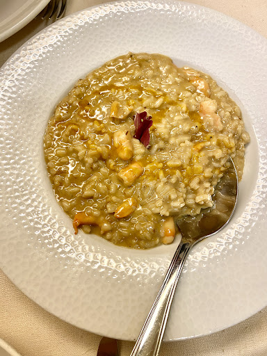En cuanto a la comida, en esta ocasión no os puedo indicar precios ya que nos ofrecieron un menú especial para nosotros, por lo que no os puedo hablar de precios o cantidad de las raciones, pero sí de lo que nos transmitió cada plato: -Risotto de langostinos y boletus: El favorito la noche. Langostino de buen calibre, arroz muy cremoso y sabor intenso a boletus. -Setas de cardo empanadas con alioli: Nunca había probado las setas así y me gustaron mucho. Corte delicado y empanado no muy aceitoso. -Pulpo a la gallega con cachelos: El pulpo muy tiernecito, muy buen sabor. Los cachelos se quedan a medio camino entre puré y patata cocida. -Lubina a la media sal con patata trufada: El punto del pescado es perfecto y el acompañamiento nos gustó mucho, pero tenía bastantes raspas. -Carne de vaca a la piedra: Nos encanta la carne a la piedra y esta pieza no decepcionó. Carne de vaca fileteada, muy sabrosa y con el añadido de poder preparártela en la mesa al punto que más te guste. -Tarta de queso: No esperes la típica tarta fluida que está tan de moda. Esta tarta de queso nos recordó más a una quesada en cuanto a textura. El sabor muy fiel a la original. Sacia mucho. ⚠️ A DESTACAR: Sus paredes están llenas de fotos con personajes famosos que han visitado el restaurante. 💳 PRECIO MEDIO: 💵💵 🏆 PUNTUACIÓN: ⭐️⭐️⭐️⭐️