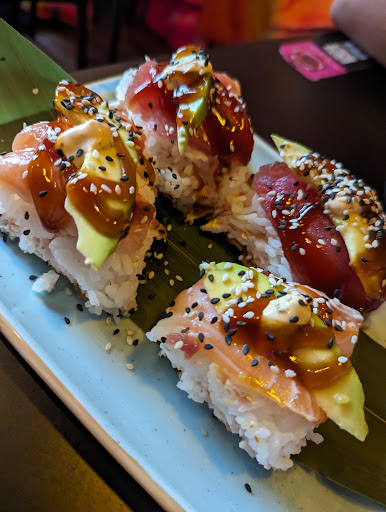 Makinon: overcooked shrimp, chewy. Over covered in crab salad. Covered in sweet sauce, too much rice, avocado was non existent.