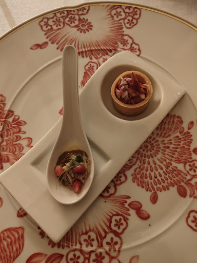 The menu was beautifully curated. I enjoyed a seven-course dinner with wine pairings, and each dish was executed with creativity and precision. The opening bites set the tone with fresh, bold flavors, followed by perfectly balanced seafood courses, a comforting main of tender meat and silky mashed potatoes, and two exquisite desserts to finish. Every plate was as visually stunning as it was delicious.