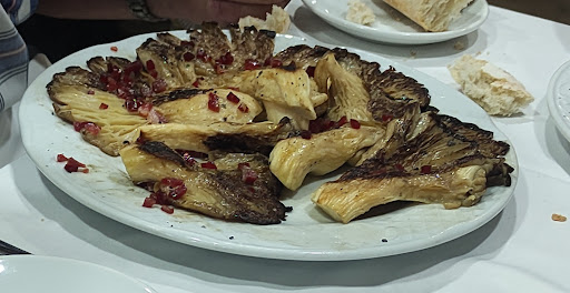 Es usted un maleducado y muy poco profesional, y si no le dijimos nada en aquel momento fue por no estropearle el día a mi madre. Ya daba igual que viniese a última hora a preguntar que tal había ido la comida. Precisamente: en cuanto a la comida, mediocridad absoluta tirando a malo, salvando las patatas bravas; especial mención a lo que probé personalmente: Parrillada de setas quemadas por fuera y llenas de líquido por dentro, sin hacer. Patatas con huevo y jamón: patatas paja (del mercadona???) con tacos de jamón microscópicos finísimos y huevo crudo.