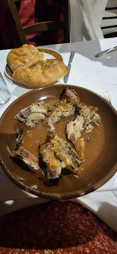 Read moreRealmente muy sorprendida, sobre todo por su decoración tan curiosa. Aprovechando una ocasión familiar muy especial, hemos venido a probar la tan conocida gastronomía castellana que en este restaurante nos ofrecen: su cordero y su cochinillo. Nada más entrar te puedes encontrar con su horno de piedra y las bandejas preparadas para que, nosotros los comensales, podamos degustar y deleitarnos una vez sentados en uno de sus salones decorados con un estilo clásico que recuerdan épocas medievales. Vigas de maderas y azulejos de cerámica decoran el espacio junto con cuadros de bodegones, en ocasiones con temáticas costumbristas, donde el claro paso del tiempo ha ido dejando una grisácea capa oscureciendo el óleo. También podemos encontrar algunas cabezas de animales colgadas, cabezas de toros concretamente, que si bien no soy yo muy taurina, ni comparto este gusto estético, entiendo que van con el estilo del lugar. Pasemos a lo importante, la comida. Te reciben con un aperitivo de encurtidos variados y unos panes hechos al horno muy esponjosos y ligeramente impregnados en aceite, solo por esto ya merece la pena visitar el restaurante. Pedimos unas croquetas de cocido que estaban pasables, un jamón bastante rico y una ensalada para acompañar nuestro cochinillo y el cordero. Estos últimos de sabor muy agradables y con la piel crujiente super sabrosas, además, lo acompañan de unas patatas panaderas que siempre es de agradecer. Por cierto, así como el rioja de la casa acompaña a la perfección, los postres están buenos pero no son...