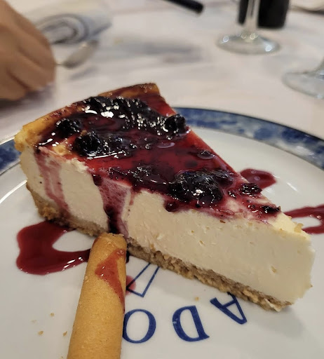 Our waiter talked like a machine gun and although we all speak Spanish I had to concentrate to understand what he was saying. Fortunately, we knew what we wanted so that went fine. As shared appetizers, we took fish, anchovies, and peppers plus grilled octopus with mashed potatoes. They were delicious. The highlight for us, was of course, the cochinillo and it was perfect. Another member of our party took pork intestines which were also quickly eaten. The usual white wine and beer as drinks and flan casero for dessert. All in all, an ok experience if you want to eat suckling pig. Lunch for 3 amounted to 144 Euros which...
