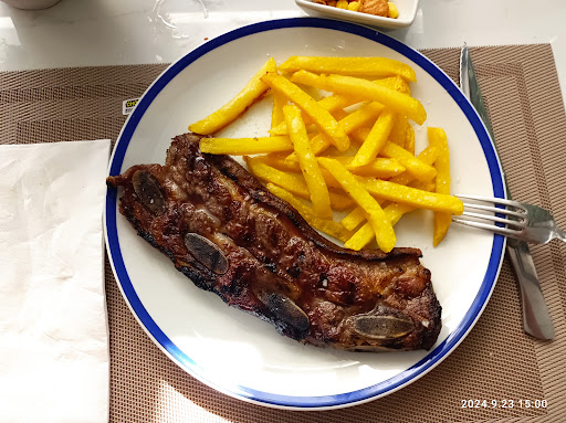 Comida rica. Buen trato. Ayer echamos un partido de tenis y luego nos quedamos a comer allí. La ensaladilla rusa es muy abundante y está buena. Croquetas de jamón no tenían y no quisimos probar las de boletus y demás porque íbamos con niños. Mis hijos pidieron hamburguesa y sandwich mixto con huevo frito y estaban bien. Aunque la primera llevaba patatas fritas y el segundo patatas de bolsa. Mi marido un bocadillo de butifarra, sencillo, pero le gustó. Yo me pedí un cuarto de pollo asado al horno de leña, especialidad de la casa. Te lo sirven con patatas y el jugillo que ha llorado el pollo durante su horneado. Muy rico y jugoso. Además eliges pechuga o muslo. A los postres no llegamos porque ya estábamos llenos. En la carta los vi pelín caros-6€ tarta de manzana...-. Si eran caseros, igual merecían la pena. Las camareras fueron rápidas, eficaces y educadas. Nos atendió una señorita rubia, con acento rumano o ruso. Recomiendo este lugar. Sencillo, mucha variedad de tapas y con terraza. Repetiremos. (Hoy hemos repetido, 12 de octubre de 2021 y hemos probado las croquetas de jamón, buenísimas y la tarta de queso con dulce de leche...espectacular. Muy recomendable). Edito reseña. Marzo 2024, no sé si han cambiado a los cocineros pero las últimas dos veces que he ido han sido un desastre. Hoy pedí medio pollo y dos menús infantiles. Aparte de tardar dos horas en comer, media para traer el primero de los menús infantiles, media para los segundos, media para el postre y media para el café, aparte de ese despropósito, camareras despitadas y atendiendo dentro y en la terraza simultáneamente, el pollo sabía amargo. Y no han tenido ni el detalle de quitarlo de la cuenta. Carísimo y malísimo. Creo que no vuelvo. Qué lástima, era un sitio...