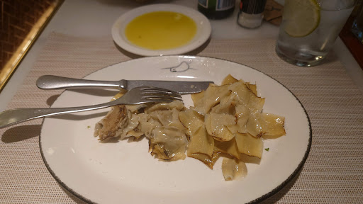 After we finished our meal, we simply asked what “aperitif” meant. She explained that it included bread, olive oil, and tomato soup. We then mentioned that we never received any tomato soup. Suddenly, she walked away without a word, came back quickly, grabbed our original bill, crumpled it in her hand, and threw it onto the table, handing us a new bill with the aperitif charge removed (probably €6 for two).