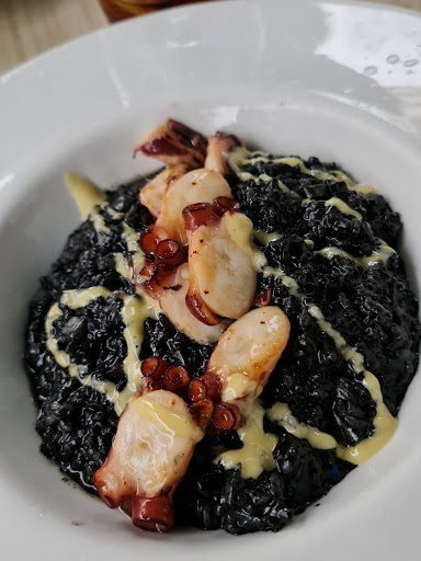 Read moreEstábamos de gestiones por Madrid, y hemos parado a comer, en el primer sitio que hemos visto en google maps...y ¡que sorpresa mas grata! Es un bar de barrio de toda la vida, humilde me atrevería a decir, pero RI QUÍ SI MO, de verdad. Hemos comido en la pequeña terraza que tienen. Hemos preguntado al camarero, por unos platos y nos ha dicho que todo estaba muy rico, simplemente nos ha concretado las diferencias, nos hemos decantado por la ensalada de chipirones, que nunca la había probado antes, espectacular, los canelones y el arroz negro con pulpo no se han quedado atrás, adjunto fotos, el plato del arroz en hondo (trae mucha cantidad). El postre impresionante, un coulant de chocolate hummmmmm el más rico que haya probado. Un acierto. Entiendo que la hostelería debe estarlo pasando mal, porque con lo rico que estaba TODO me ha sorprendido que no estuviera saturado de gente. Gracias al camarero que nos atendió, el que había estado viviendo en Suiza, majísimo, se puso a llover y veló en todo momento para que estuviéramos cómodos, fue muy amable, simpático. Una pequeña joya escondida en un bar común de toda la vida. El precio, se ajusta a la calidad, lo que puede engrosar la cuenta son las bebidas, pero el precio d estas no dista de la competencia, mientras que la comida es muy buena. Habrá sido unos 60 euros para dos personas, 1 cerveza, dos cocacolas, 1 tinto de verano, 1 botella grande de agua, 3 platos de comida y 1 postre. Creo que en cualquier otro sitio cobrarian más, mis felicitaciones a la cocina y al resto...