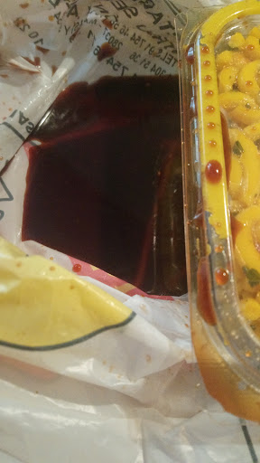 Read morePedimos por just eat tallarines con pollo y fideua de mariscos.Lo pedimos sobre las 14.00 del dia de hoy 6/7/2020 .En el geolocalizador nos comunicaba cada minuto que el pedido iba a estar sobre las 14.12 luego 14.20 y decia que el pedido estaba en camino.Al llegar nos encontramos que la bolsa que venia el pedido esta regada de una salsa negra que podria ser de los tallarines y entro en el fideua.La comida super fria no nos la hemos podido ni comer ni el flan que regalaban 13 euros tirados a la basura .Adjunto las fotos.Doy una estrella porque o sino no se puede publicar , no lo recomiendo pedir...
