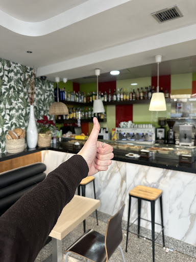 Read moreEs la típica cafetería pequeña que da raciones y comida de menú para gente de paso con poco tiempo, los camareros son simpáticos y el servicio rápido. He frecuentado está cafetería estás últimas semanas algunas comidas y alguna cena. El menú se compone de 5 primeros, 5 segundos, postre, bebida y pan por 10€. También está la opción de un plato combinado con una bebida a 7,5€. Hay bastante variedad de platos, la calidad es buena, está todo bien cocinado y los postres son caseros. Recomiendo especialmente te los calamares a la romana, están buenísimos, rebozado crujiente, tiernos por dentro. Como anécdota, una cena el camarero nos dijo que el pedido iba a tardar un poco más de lo que pensaba y nos invitó a un pincho de tortilla. Recomendado para gente que no tiene mucho tiempo y quiere comer bien sin...