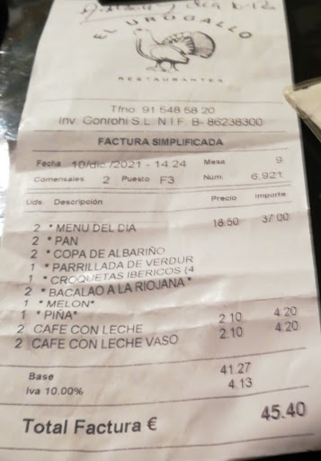 We decide to come on a lunch being Friday .. we opted for the Set Lunch Menu which was an amazing value . My starter of vegetables was fresh cooked a la plancha was tasty . My father ate croquettes which he gave the thumb up . Second course we ate cod A la Riojana which was cooked perfectly and moist with some boiled potatoes .