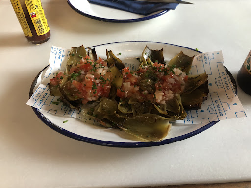 I came here on my first night in Madrid based on a recommendation. I wish I hadn’t. Isn’t food supposed to bring joy? Well, this place certainly doesn’t. I ordered the artichokes with salsa, an okay dish if you don’t care about food, I suppose. Parts of the artichokes were nicely charred, while still remaining pretty much raw, and a challenge to chew through. The pico de gallo complimented them just fine. I then ordered a salmorejo, my favorite summer dish in Spain, a cold creamy tomato soup, traditionally served with jamón, eggs and extra virgin olive oil. Sadly, theirs was watered down to the point of being like tomato juice. They also didn’t serve me a spoon. This is where I found out just how attentive the staff is. It took about 6-7 minutes of trying, and failing, to wave any server down, until finally, the bartender noticed my weak attempts and brought me a spoon. Pretty hard to eat a soup with a knife and fork, isn’t it? In restaurants I’ve worked at, we bother to notice which way each plate is facing, so the restaurant logo faces the guest, and therefore each dish is plated to look the most attractive facing the person being served. Bringing a soup with no spoon is just complete lack of caring about your guests’ experience. I then ordered beef, “in the style of kebab”. Whatever you expect that means, you are mistaken. There are no chunks of beef, and most importantly no skewer, it’s served as mincemeat, in a paella-type pan, with pine nuts and hummus on the side. The flavors are strange and too sweet, unless you douse each bite with the hot sauce they provide on every single table. But surely, I haven’t come to eat bottled hot sauce. In order to hammer down the already miserable atmosphere from the food, they decided to play the most uplifting song perfect for any bar, that always sets a joyful drinking mood. R.E.M. - Everybody Hurts. I am not kidding. Without understanding a single lyric from that song, it is the most depressing thing I have ever heard played in any restaurant. Wow, was everything upsetting. The staff, as soon as done talking to a nearby table, have the strict tendency to make a 180° turn and walk right off, as you are politely waiting for them to be done talking/listening to get their attention. It’s like they have better things to do. The music choice, and service, understandably made the atmosphere as good as the food. Which is…...