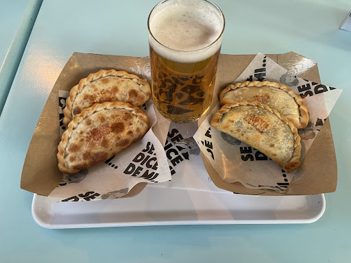 Sinceramente, me esperaba mucho más, viendo las opiniones. 6 empanadillas y una bebida 20 euros. No voy a criticar el precio, más bien las empanadas. Todas las empanadas que compré, tenían lo mismo en común:un relleno muy muy escaso poco fiel a la descripción de las pizarras. De las 6, cuatro apenas tenían ingredientes....eso sí... queso para aburrir y poco más. Un queso además de los que masticas y se hace bola como un chicle. Las calabresas, supuestamente con chorizo picante, medio vacías...con mucho queso y un cuadradito minúsculo de chorizo. Una de ellas, estaba prácticamente vacía....llena de aire, con 2 gramos de queso y medio gramo de chorizo. La caprese igual....queso y dos cuadraditos minúsculos de tomate.. Personalmente, considero muy caro este sitio. Pagar más de 3 euros por una empanada medio vacía, no me parece ni medio normal.
