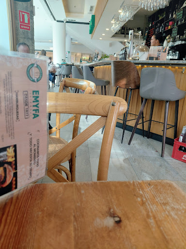 A lovely little Café, with great food at the entrance of Arturo Soria Plaza. Either you want to have breakfast, brunch; either coffee tea or something to drink, or menu del dia; it is a great option. The food is great. The tortilla de patata is truly delicious , especially the one with caramelized onion. In summary, although it is not in the center, this neighborhood is very beautiful, and Emyfa is a place you can come and sit and enjoy the green Arturo Soria any time of the day. The staff is helpful. Know that until 13 you have to order yourself, after that hour, the waiter comes to the table. There is no problem in parking, you can park...