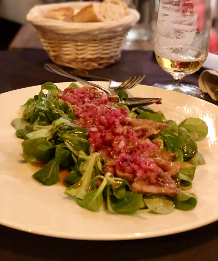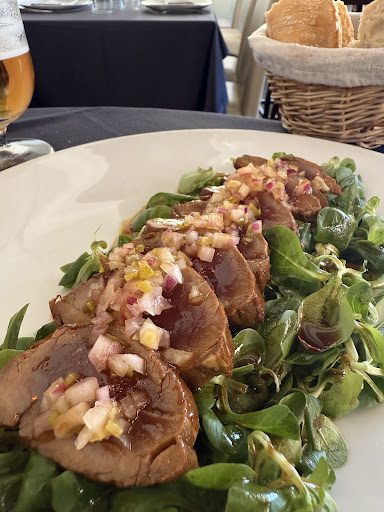 Tercera vez que voy y de verdad que buen hacer y atender. De primero una ensalada de solomillo de cerdo con vinagreta de piparras sencillamente exquisita, para continuar unos huevos fritos con patatas y migas de jamón, ¿a quien no le gustan unos huevos fritos buenos con un jamón del rico y patatas fritas caseras? Es imposible resistirse, y para terminar el mejor steak tartar que he probado en mi vida, perfecto de sabores, perfecto de picante, saboreas la deliciosa carne .... Solo puedo calificar la comida de una manera, exquisita!! Paco que bien lo hacéis!!! 👏