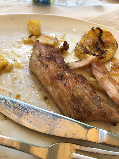 Para comer pedimos dos ensaladas (al menos estaban buenas), una parrillada de carne y una de pescado/marisco. Nos trajeron las ensaladas y UNA HORA de reloj después, después de varias quejas, nos trajeron las parrilladas (Nos sentamos a las 2 y nos las trajeron a las 3:15). La de carne estaba HELADA, le mandamos volver a calentarla y acabamos discutiendo con el camarero por su tardanza y sus malas formas, ya que soltaba comentarios bastante inapropiados como "Desde el principio esta mesa no ha empezado bien", "cuando quieras me dejas hablar", "si te parece que tardamos pues os vais" y similares. No volveremos.