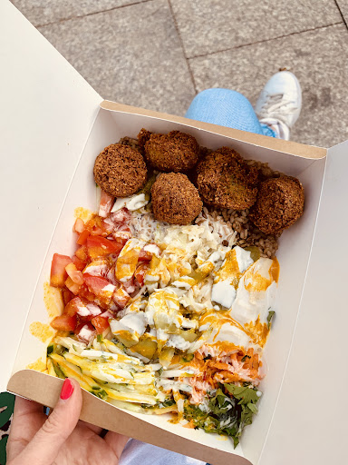 I had the classic falafel bowl (8.5€) that comes with magadara (brown rice & lentils - very typical in middle eastern cuisine) home made hummus, lots of fresh veggies and herbs and a salsa of your choice. If you don’t fancy rice, you can have pita bread (7.5€). You can chose as many different toppings as you like. Their specialities are falafel, baked Aubergine and seitan as well as different starters. Great price and...