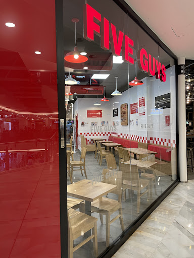 Read moreHemos ido hoy a comer a las 14.30 horas. Pedido dos hamburguesas las papas kajun más caras de la historia(esto ya lo sabía,porke nos encantan pero son solo patatas para que cuesten 6,60)con kajun aparte y una bebida,al recoger el pedido las patatas mezcladas con el kajun,bien empezamos...una de las hamburguesas con complementos que no habíamos pedido.la bebida bien,supongo que porque solo te Dan el vaso vacío. me acerco a que me cambien las patatas,me piden disculpas y me las cambian. Ruido de la cocina,Ruido de música muy alta,pero muy alta,además se les va la energía eléctrica y nos quedamos un minuto sin luz,de lo más normal parece ser. A gritos desde la cocina los números de pedido para recoger,12 veces grita mi número sin mirar que estoy esperando desde la segunda vez que lo vocifera,desagradable el ruido mientras comes,esto no es un mercadillo de fruta.comemos varias veces al mes en otros five guys,pero lo de este local,es incomprensible. Solemos comer en el local de al lado, cuando vamos a la vaguada,pero hoy por querer...