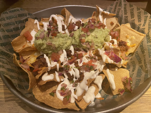 Eso sí, la comida, como ya os adelantaba, nos encantó de principio a fin. En esta ocasión probamos: -Chicken Tenders (12,50€/8 tiras): Tiras de poco crujientes con salsa miel y mostaza y BBQ. Nos gustaron mucho. Bastante grandecitas y con un empanado muy grueso. Las salsas están deliciosas. -Burger Guacamole (13,50€): Guacamole, chipotle y cheddar. Riquísima. Tiene un toque picante muy bueno y el guacamole se percibe casero gracias a los trozos de aguacate que encontramos. El pan buenísimo también. -Burger Super Frankie Cheese (14,50€): 250 gramos de carne, doble cheddar, doble bacon y salsa Frankie. La reina de la carta. El bacon muy rico y mismo pan que la anterior. La carne está muy buena, el único pero es que al tener 250 gramos en la parte central nos pareció algo seca. -Tarta de queso (6,50€): Muy buena tarta de queso, tanto en sabor como en textura. La base es más dura de lo que nos gustaría, pero nos encantó el conjunto. ⚠️A DESTACAR: Tienen otro local en Ponzano. 💳 PRECIO MEDIO: 25€ por persona. 🏆 PUNTUACIÓN: 8 📸 iPhone 11 Pro Max