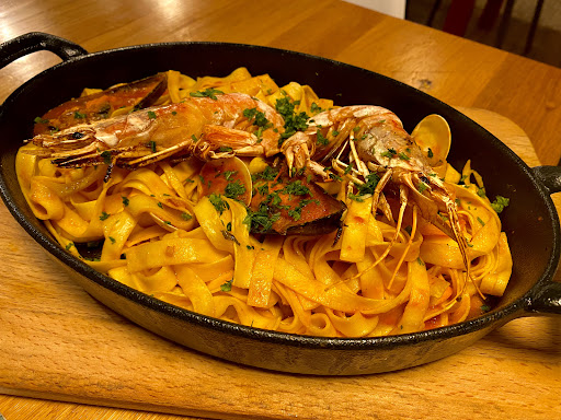 Fuimos a almorzar hoy y los platos principales estaban muy buenos: el frutti di mare y el calzone napolitano cumplieron sin problema. El postre Il Gelato Colossale también estuvo bien. Pero lo que realmente se llevó el protagonismo fue el camarero, que parecía estar en un karaoke improvisado.