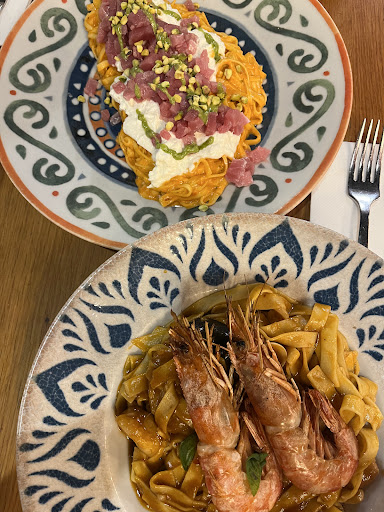 We wanted to try some Italian food so we decided to walk in….Literally… The Moment we walked in, (LITERALMENTE) this RUDE server (una mujer) shouted at us saying she’s got a lot of tables that she has to serve upstairs and it’s going take a long time to serve us…. Eh .. perdona ? First, You dont talk to customers that way. Second, be nice next time that way we can understand where you are coming from. We will never even look at this place.