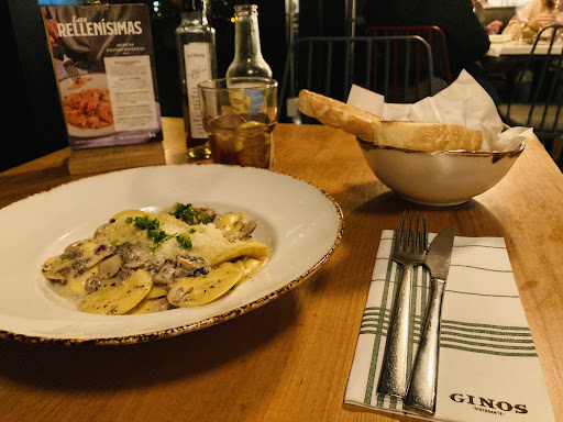 Decepción total. Solíamos venir a este Ginos en cumpleaños de la familia o citas ya que la comida solía estar muy bien y vivimos cerca. Fuimos un grupo de cuatro personas por el cumpleaños de uno de nosotros, nos pedimos tres platos de pasta, una botella de vino tinto y una ensalada de salmón… la ensalada se la pidió mi padre y asombrosamente no tenía NADA de salmón, no es una exageración, literalmente solo era mezclum y tomate cortado en trozos, incluso nos hizo gracia y nos empezamos a reír de mi padre, pero si es verdad que por el precio que tenía que era el de un plato de pasta o una pizza decidimos llamar a la camarera y decirle lo más amablemente posible que nos la cambiara porque no tenía salmón y que por el precio prefería un plato de pasta. La camarera sin problemas nos las cambio. El plato de pasta lo trajo la cocinera, con unos guantes azules de mal aspecto y poco higiénicos, la cocinera puso el plato en la mesa con cara de enfadada… no prestamos atención y entendíamos que podría ser molesto para un trabajador recibir una “queja”. La pasta estaba nadando en salsa y el plato estaba a rebosar de pasta jajajaja parecía un reto para que no nos quejásemos pero tuvimos que volver a llamar a la chica que estaba en la sala en ese momento de nombre Jesica para decirle que los gambones estaban grises y que los abrimos y efectivamente seguían congelados… Jesica no se lo tomó muy bien y su respuesta fue: “vale, solo cobraré tres platos de pasta y se fue” queríamos pedir unos postres por el cumpleaños pero decimos ir a pagar porque el ambiente estaba muy tenso, la cocinera estaba en la barra quejándose con Jessica y señalándonos a nosotros. Una vez que pagué Jesica salió, fue detrás de nosotros a decirnos que no nos había cobrado la botella de vino, vuelvo a pagar y mientras ella buscaba la botella de vino yo estaba mirando la cuenta y me dice: “no mires mucho por qué no te la he puesto, a que no?” Jesica por lo que parece que es la encargada de sala porque llevamos años viéndola. La conclusión es que el lugar ha bajado mucho de calidad, da la sensación de que el personal está quemado y que su trabajo es muy repetitivo cada día y lo hacen de muy mala gana. Lamentablemente no volveremos a este sitio y no lo recomiendo a nadie si no quieren pasarlo mal.