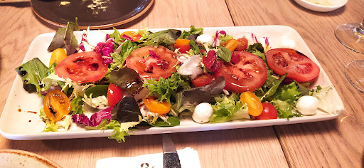 La ensalada Nouova Caprese era distinta de la anunciada en la carta: lechuga barata en lugar de brotes y albahaca, bolitas de mozzarella coriente insípida en lugar de la anunciada mozarella de bufala. Y sin aliñar. Tuvimos que pedir aliño dos veces y ni con eso mejoró. Por cierto, difícil de aliñar una ensalada servida en una bandeja plana y sin al menos una cuchara para ayudarte...