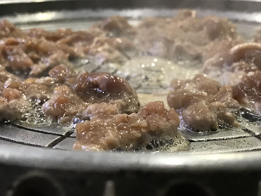 Y ya por último y el que se lleva las palmas de oro y no puedes parar de comer, es el Bul Go Gi, un plato de ternera y verduras que llegan crudos a la mesa y se terminan de cocinar en una plancha que te instalan, una vez lista la carne se pone sobre una cama de lechuga a la que primero se le pone una capa fina de la salsa secreta y bien resguarda de la casa (intente pedirla varias veces pero no hubo suerte) y listo, a modo de taco mexicano para adentro, la textura de la carne es muy fina, con buen sabor y libre de grasa, vamos... un plato para chuparse los dedos.