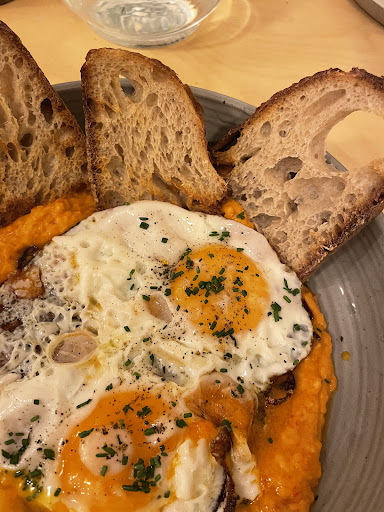 Read moreAl llegar, el lugar estaba lleno por lo que tuvimos que esperar 10 min a qué alguien saliera. Cuando eso ocurrió, nos enteramos que le dieron la mesa a otra persona que llegó después de nosotros. En "compensación" nos llevaron a un sótano donde tenían montado como una sala de reuniones y nos sentaron en una mesa baja NO preparada para comer en ella (era muy baja y por ello, incómoda). En ese sótano había una mesa grande de reuniones donde habia un grupo de gente sentada, cuando este grupo se fue, decidimos ocupar su sitio ya que, aunque era grande, era una mesa normal y por tanto no iba a ser incómodo comer allí. Para nuestra sorpresa, al momento llegó la camarera y nos echó de esa mesa ya que había traído a otro grupo de gente (otra vez no respetando el turno de llegada). Tras llegarnos la comida y estar media comida ya, por fin nos consiguen una mesa normal, total para 5 min porque ya habíamos comido casi. Además la comida ni siquiera estaba tan buena o era tan elaborada para esos precios, lo único que recomendaría es la tostada de aguacate. Tras lo vivido hoy sé qué deben mejorar el trato al cliente y la organización ya que todo se sentía muy...