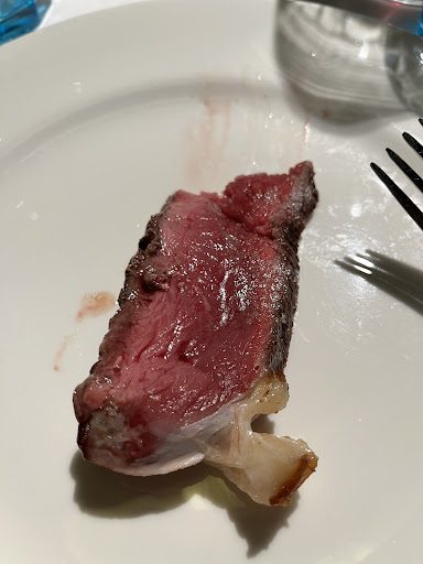 El Asador Guetaria es una apuesta segura para quienes buscan disfrutar de la cocina vasca en un ambiente tradicional y con un toque de elegancia. Mi última visita estuvo protagonizada por tres entrantes que, aunque sencillos, cumplieron con creces: la cecina, servida en lonchas finas y sabrosas, con un punto justo de sal y el sutil ahumado que la caracteriza; los chipirones, a la plancha y crujientes, con un toque de ajo y perejil que realzaba su frescura sin robarle protagonismo al producto principal. Ambos platos reflejaban el respeto por la materia prima, bandera de la casa.
