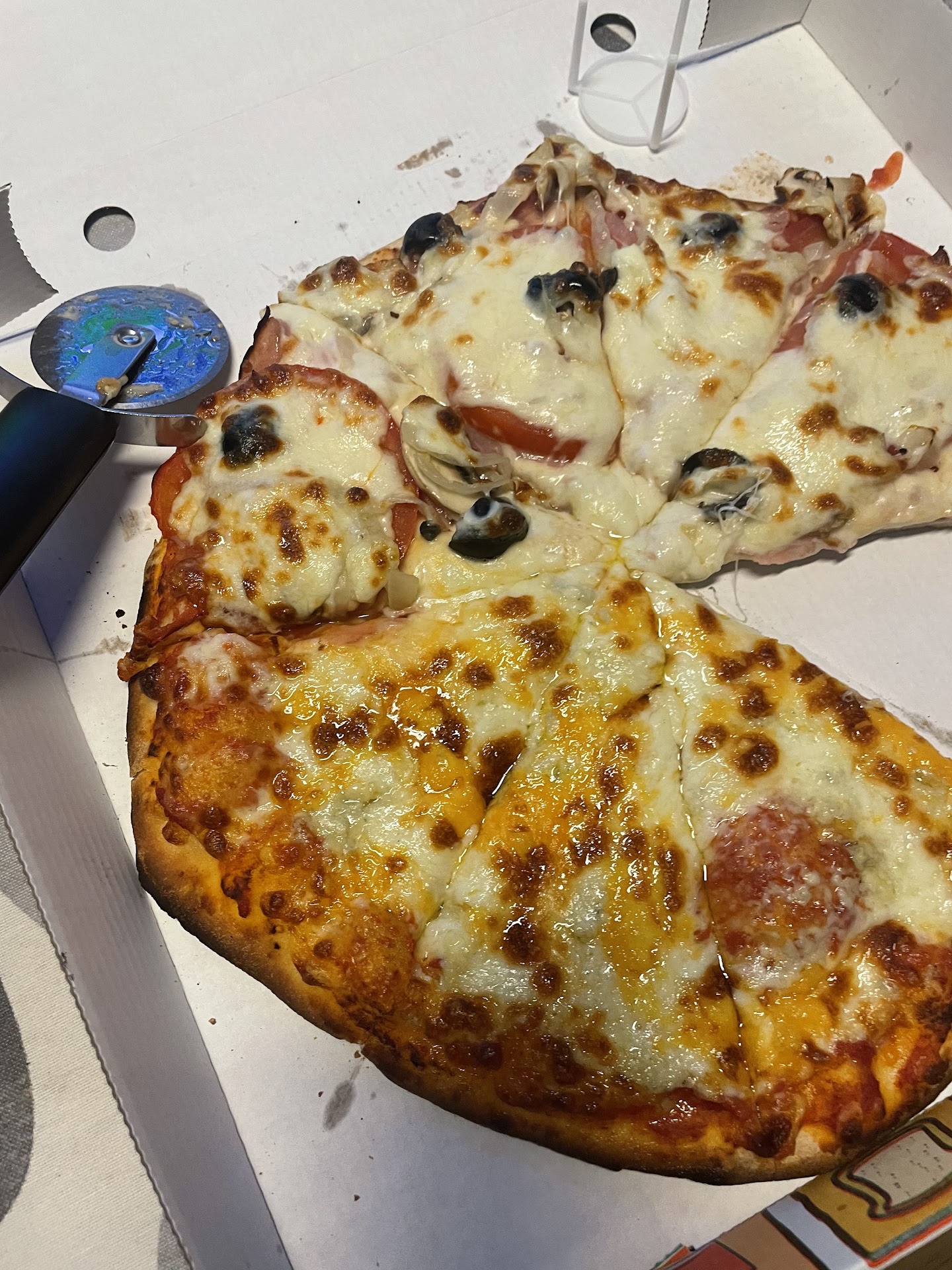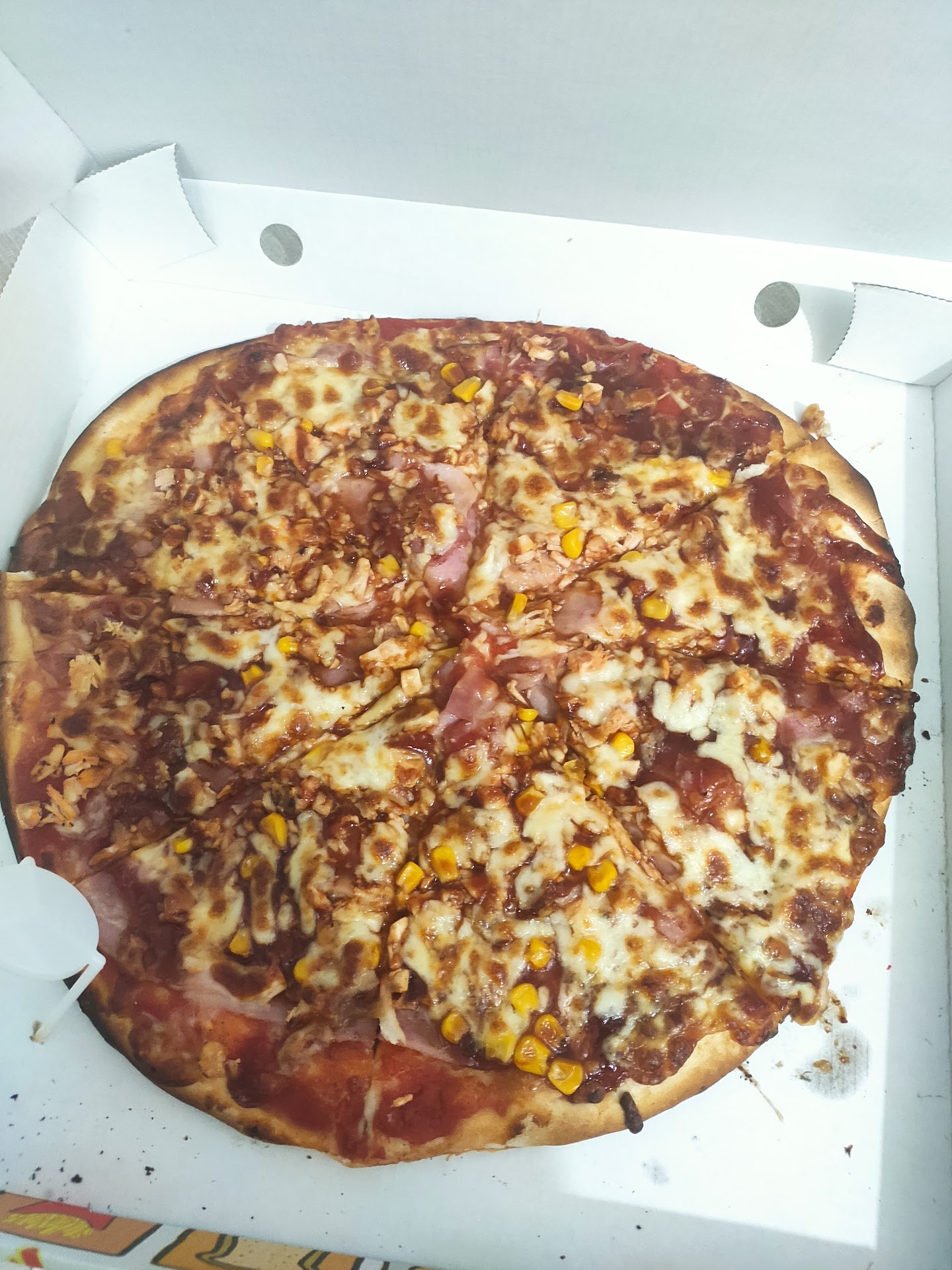 Las PIZZAS que pedimos... dos pizzas de 30cm, el precio nos pareció bueno, estaba bien, 12'50€ cada pizza. Las dos pizzas nos las dieron con el borde quemado... La masa de las pizzas es masa fina. Pedimos la pollo bbq, estaba increíble, super buena, NO se notaba grasosa, nos encantó, venía abundante de ingredientes, a esta pizza le pondríamos un 10, y volveríamos a comprarla sin dudarlo . También pedimos la carnívora, pero esta pizza... Sólo nos sabía a tomate... No sabemos si es que la pizza es así, se les cayó el bote de tomate o se les paso poner algún ingrediente ... Ni idea pero a esta pizza no la dábamos...