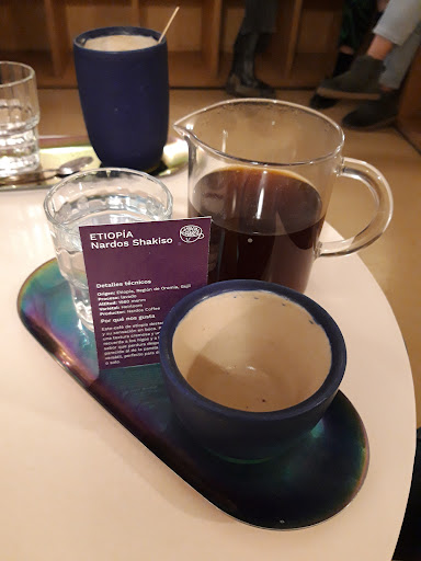 This coffee is as good as I get from my favorite speciality coffee spots and roasters at home in Philadelphia. I love East African light roast coffees. I ordered the ready made “filtro” coffee brewed in advance. That day is was Kenia (Spanish spelling). It was quite good, if a little tepid in temperature. That was the same at another specialty coffee cafe that I visited. I bought a bag (250 g or about 9 oz) of Burundi beans, which the server (owner?) ground for me. The price was similar to what I pay for 12&13 oz. at home. I Learned my lesson from a previous trip to Europe and brought a one cup cone and filters so that I could enjoy the type of coffee I most treasure during my 4 week stay in Europe this year. The Burundi is delicious. Hola also brews the typical espresso based drinks as well. I read a review of Hola that called it the best coffee in Europe. I don’t have enough experience throughout Europe to confirm that assessment, but I...