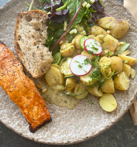 Read moreA really innovative concept that utterly screams fresh! Takes some of the best and freshest local ingredients and prepares them simply giving you a really mouth-watering meal that is effortlessly healthy and light yet completely fulfilling. Everything about the place is well thought out and friendly, it really is quite an enjoyable experience. The best thing about it is that all those lovely ingredients are laid out in front of you in the open plan kitchen and you get to pick anything you want at all to make your ideal plate. That's a real treat! I've been twice so far, on weekends, and I have enjoyed it a lot. The atmosphere is vibrant and fun (they play good music too, which is a plus). This means you have to queue for a bit, but it goes quicker than you expect, and once you've ordered and found a table your food arrives pretty quickly. I've tried the tuna, humus, falafel, and a selection of their side dishes. The falafel was a bit dry, but everything else was superb. The menu has a sprinkling of buzz terms (like detox, which is not even a real thing), which really isn't necessary because the quality is so good and everything is clearly healthy. Top place, highly...