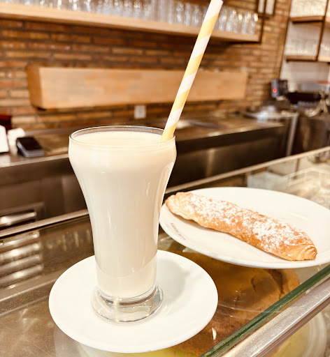 Horchata tigernut drinks with traditional pastries, plus smoothies & ice creams, in a casual room.